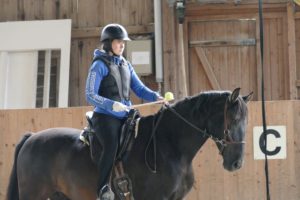 Zum Start in der Reithalle mussten alle ein Quiz lösen und anschließend ging es im Sattel zu den Spielen. Diese waren Corona-gerecht aufgebaut, so gab es zum Beispiel die ersten 5 Punkte für das Abholen und Anziehen der Einweghandschuhe vom Sattel aus. Danach musste ein Tennisball im Kochlöffel durch einen kleinen Parcours balanciert werden, die Pferde mussten einen Slalom und eine Holzbrücke überqueren. Dann wurde der Ball vom Reiter in einen Eimer geworfen und zum Schluss gab es nochmal 5 Punkte für den Wurf der Einweghandschuhe in den Mülleimer. Als das geschafft war, ging es hinaus auf eine 12 km lange Geländestrecke. Hier waren Buchstaben am Wegrand versteckt und es musste ein Bilderrätsel gelöst werden. Am Abend trafen sich alle Reiter zur Siegerehrung in der Brauhausstub`n in Geisenhausen. Die meisten Punkte und somit den ersten Platz erreichten Katrin Gammel und Barbara Holzner mit ihren Pferden Diamond und Jary. Auf Platz 2 und 3 gab es Punktegleichstand, hier entschied eine Schätzfrage. Die Urkunden für Platz 2 gingen an Janina Haak und Sandra Blenninger, Platz 3 erreichte die Einzelstarterin Bettina Feichtgruber mit ihrem Snoopy. Der Abend konnte in gemütlicher Runde ausklingen und alle waren sich einig, dass es ein gelungener Pferdetag in einem ganz besonderen Jahr war.