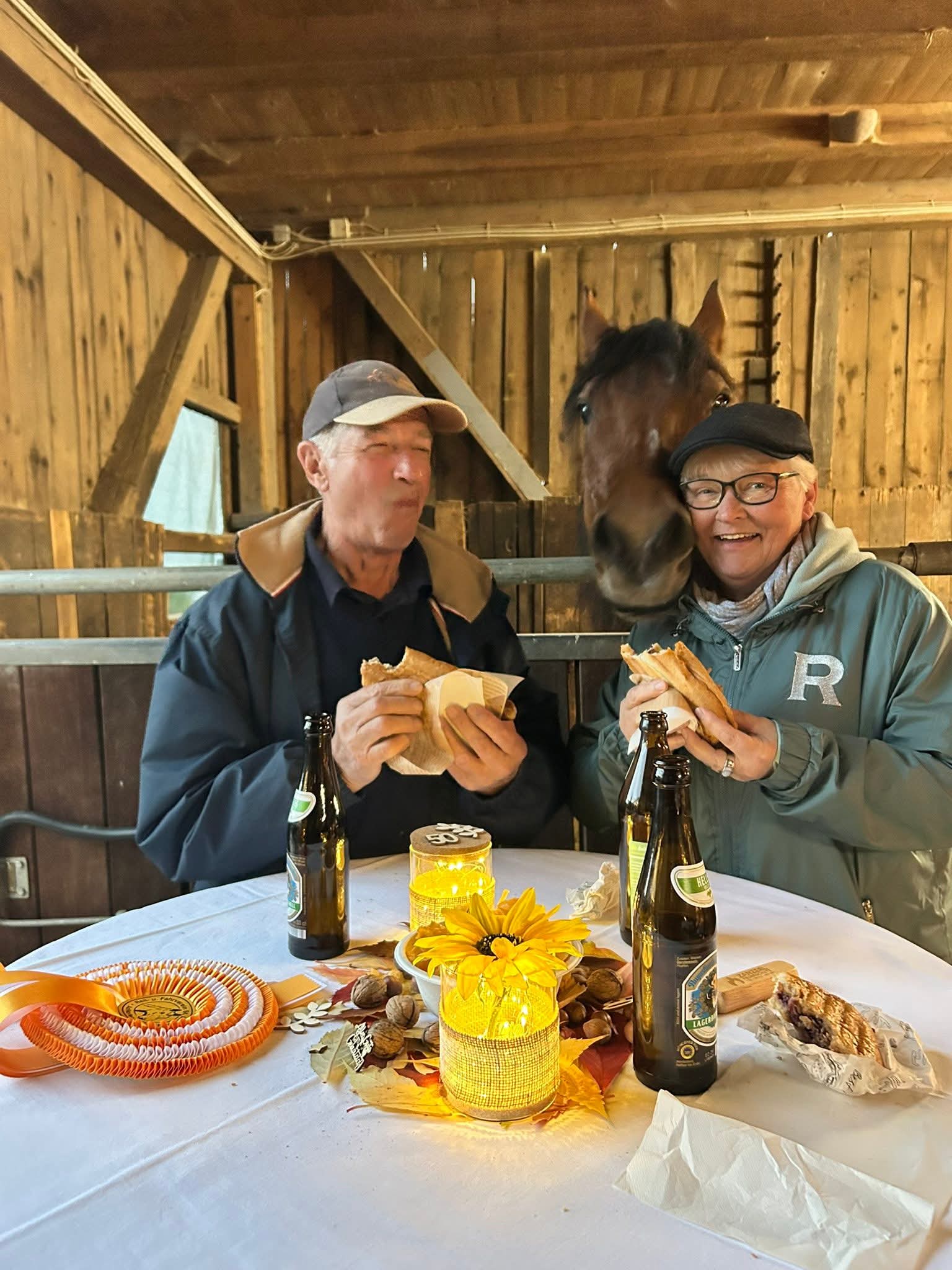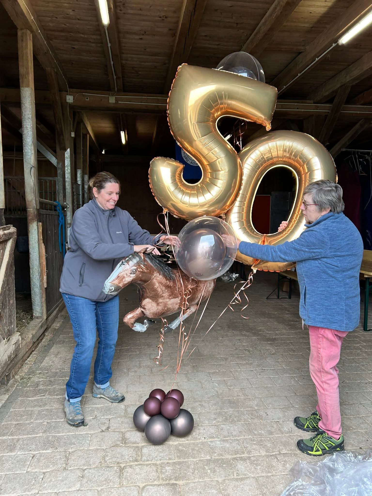 Am Abend trafen sich die Teilnehmer, weitere Mitglieder des Reitvereins sowie umliegende Reitvereine zur Siegerehrung und 50-Jahrfeier des Reitvereins.