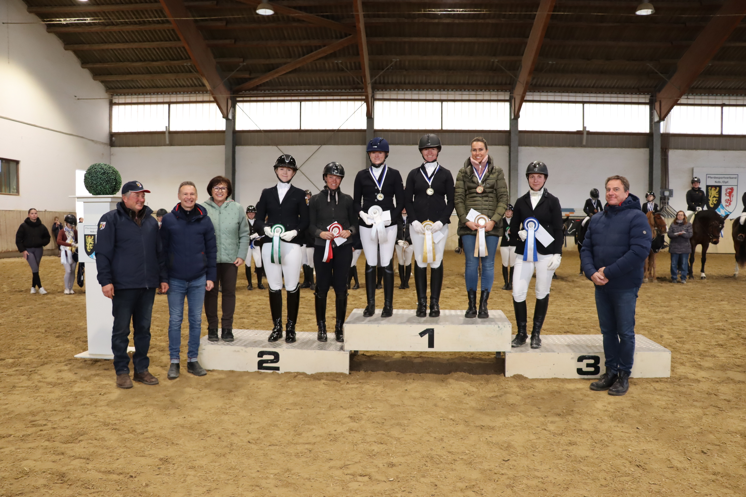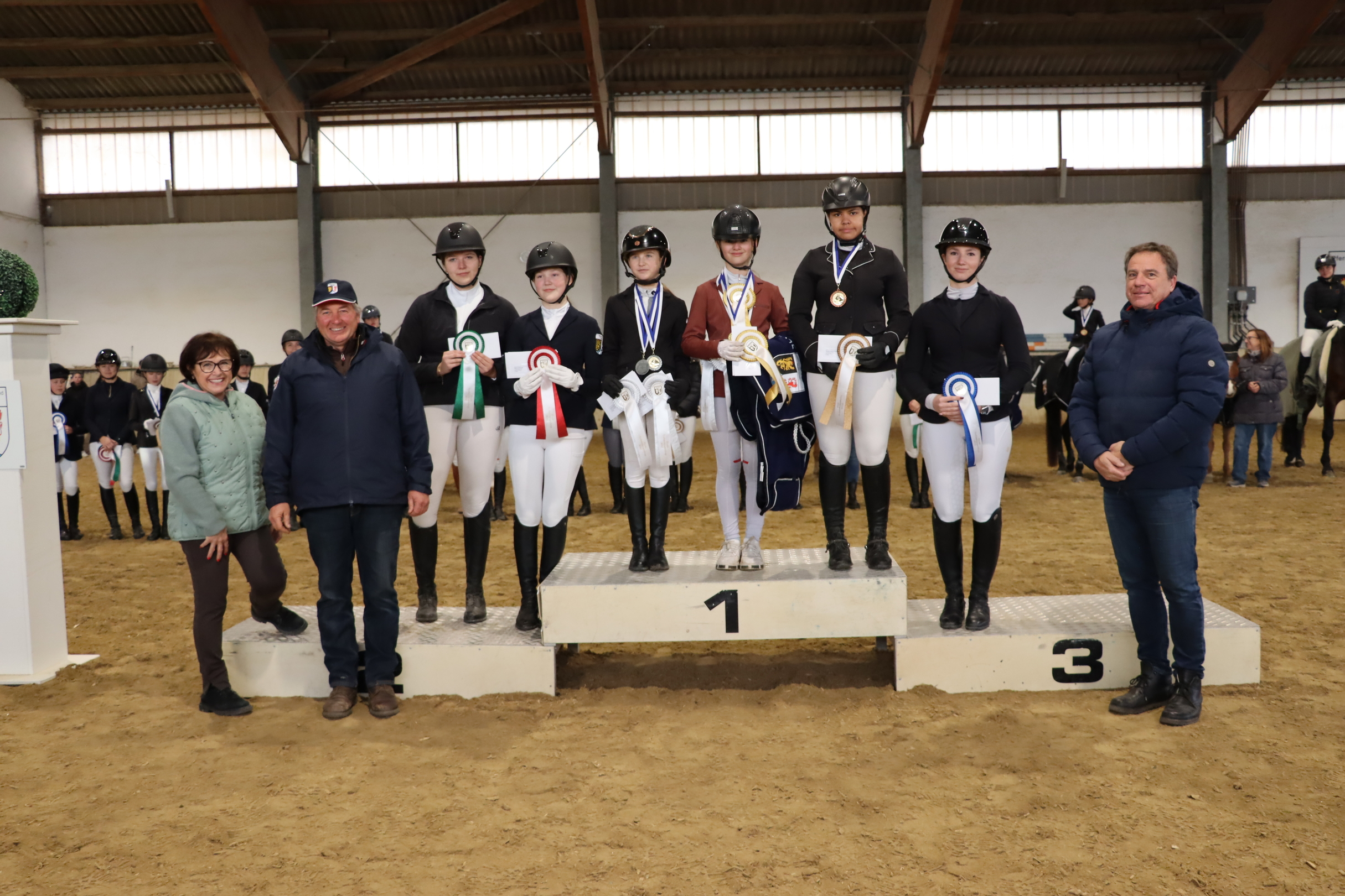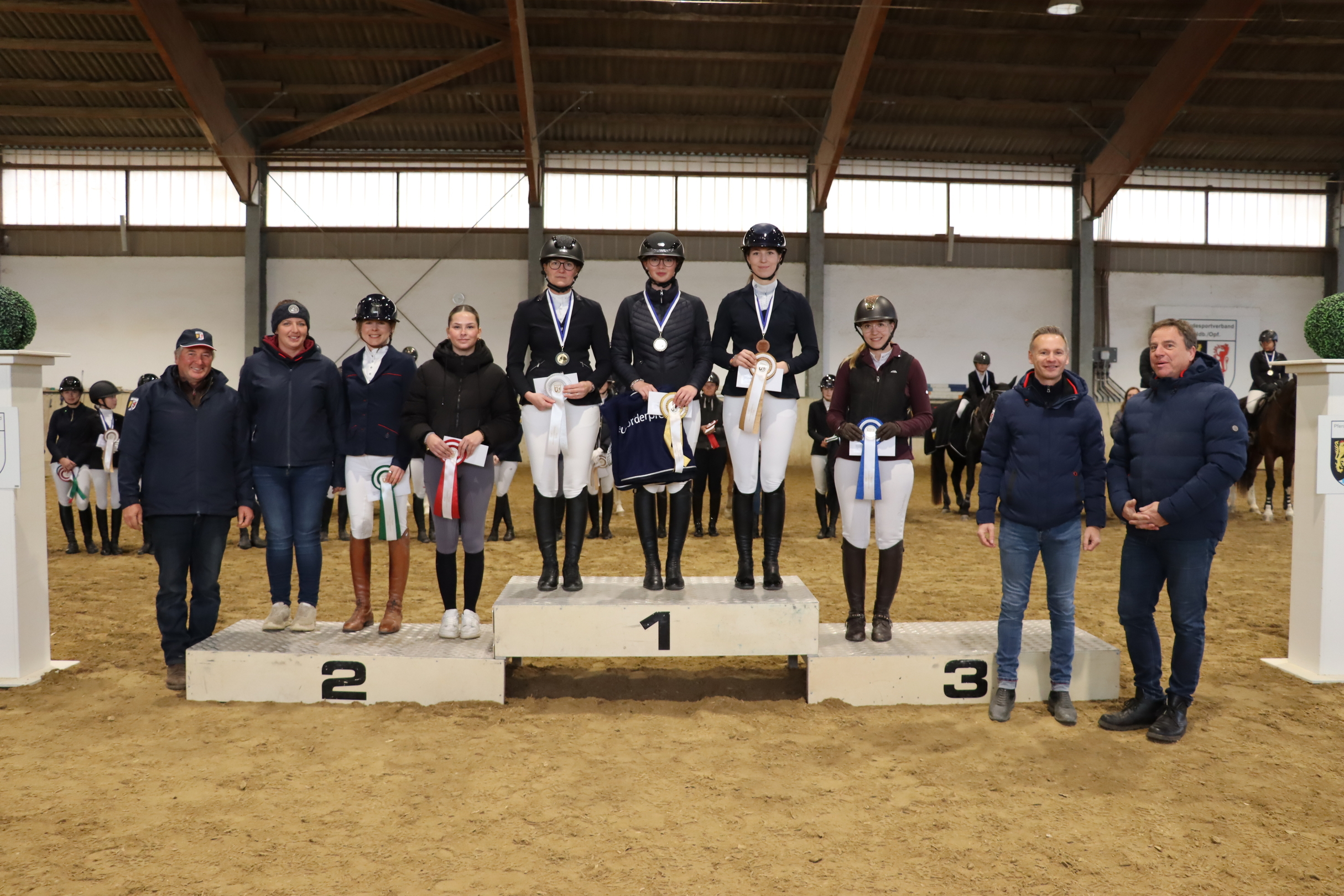 Im Rahmen der Veranstaltung wurden außerdem mehrere Reiterinnen aufgrund ihres Alters aus dem Ponykader verabschiedet und für ihre langjährigen sportlichen Leistungen geehrt. Die Auszeichnung erhielten Mirja Reinl, Linda Vetter und Emma Achatz, die den Kader über viele Jahre hinweg mit großem Engagement und konstanten Erfolgen bereichert haben.