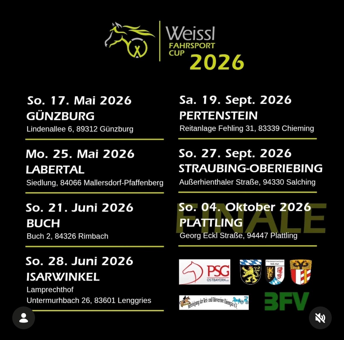 « Alle Veranstaltungen Fahren – WEISSL-CUP – Termine 2026 10. Februar 2026 @ 8:00 - 17:00 « Springlehrgang mit Teresa Litterbach Voltigieren – Onlineseminare » Wir wünschen allen Fahrer/innen eine erfolgreiche Turniersaison 🏆🥇🥈🥉 + Google Kalender+ Zu iCalendar hinzufügen Details Datum: 10. Februar 2026 Zeit: 8:00 - 17:00 Kategorien: Allgemein, Turnier